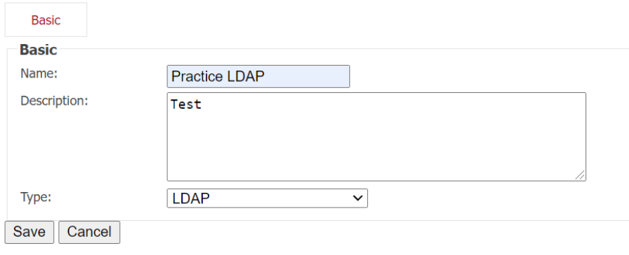 3. Enter the name you want to use for the server, a description, and choose the type from the dropdown. In this case, we’ll choose LDAP.