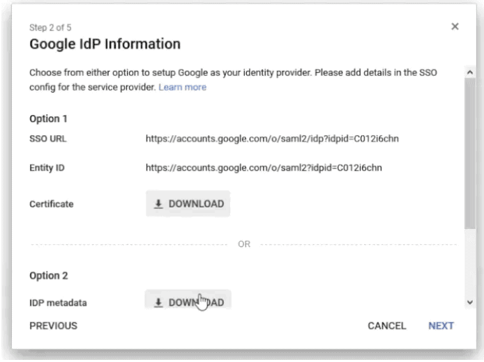 - Navigate back to the SW2 Management Portal and copy the ACS URL and EntityId from the Identity Provider section, and paste it into the Service Provider Details of the Google SAML App Setup